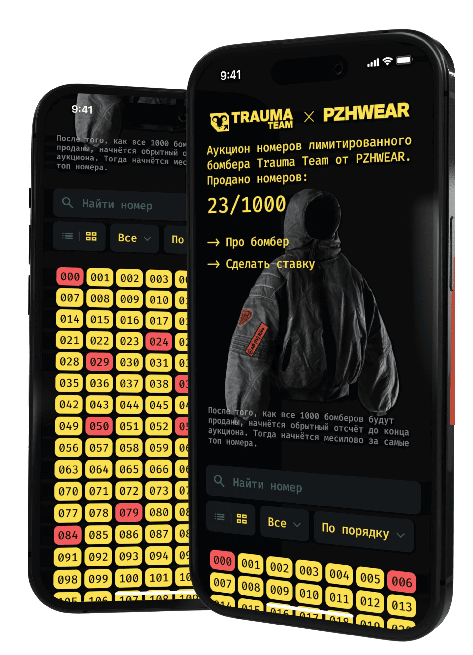 Задизайнил площадку для проведения аукциона на покупку номеров лимитированного бомбера. Сейчас проект в разработке.